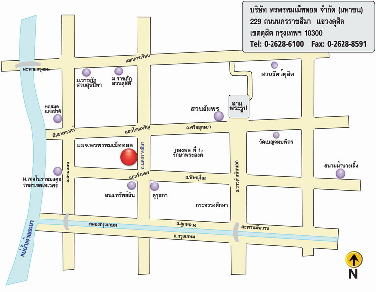 บริษัท พรพรหมเม็ททอล จำกัด (มหาชน) อาคารพรพรหม 229 ถนนนครราชสีมา แขวงดุสิต เขตดุสิต กรุงเทพฯ 10300