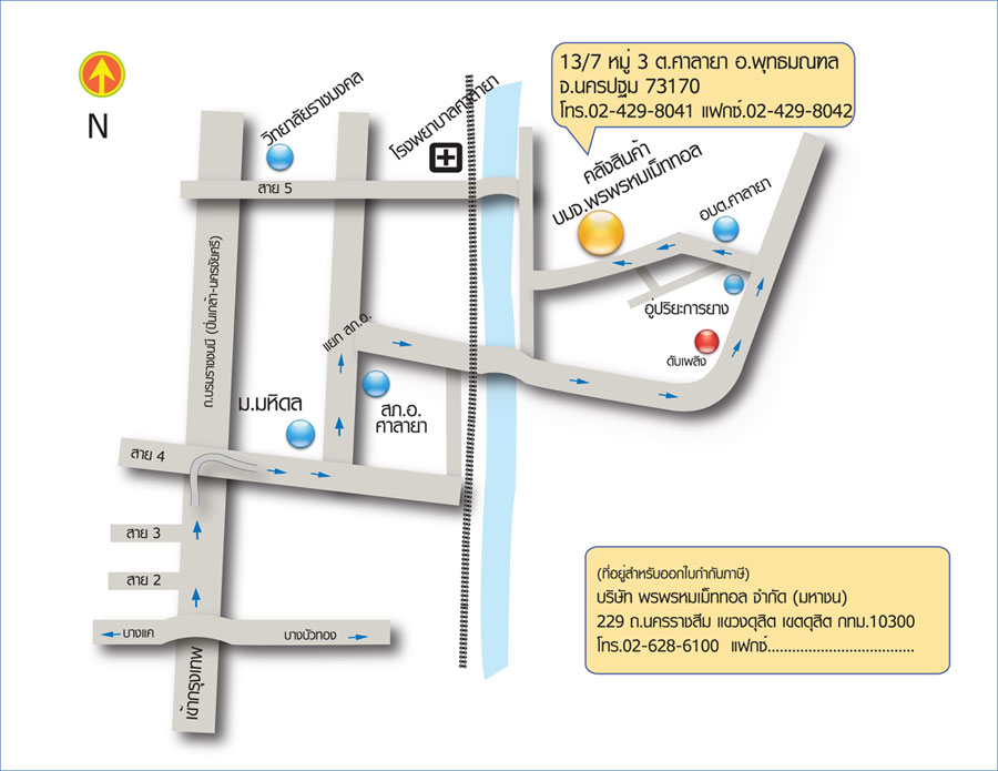 บริษัท พรพรหมเม็ททอล จำกัด (มหาชน) 13/7 หมู่ที่ 3 ตำบลศาลายา อำเภอพุทธมณฑล จังหวัดนครปฐม 73170
